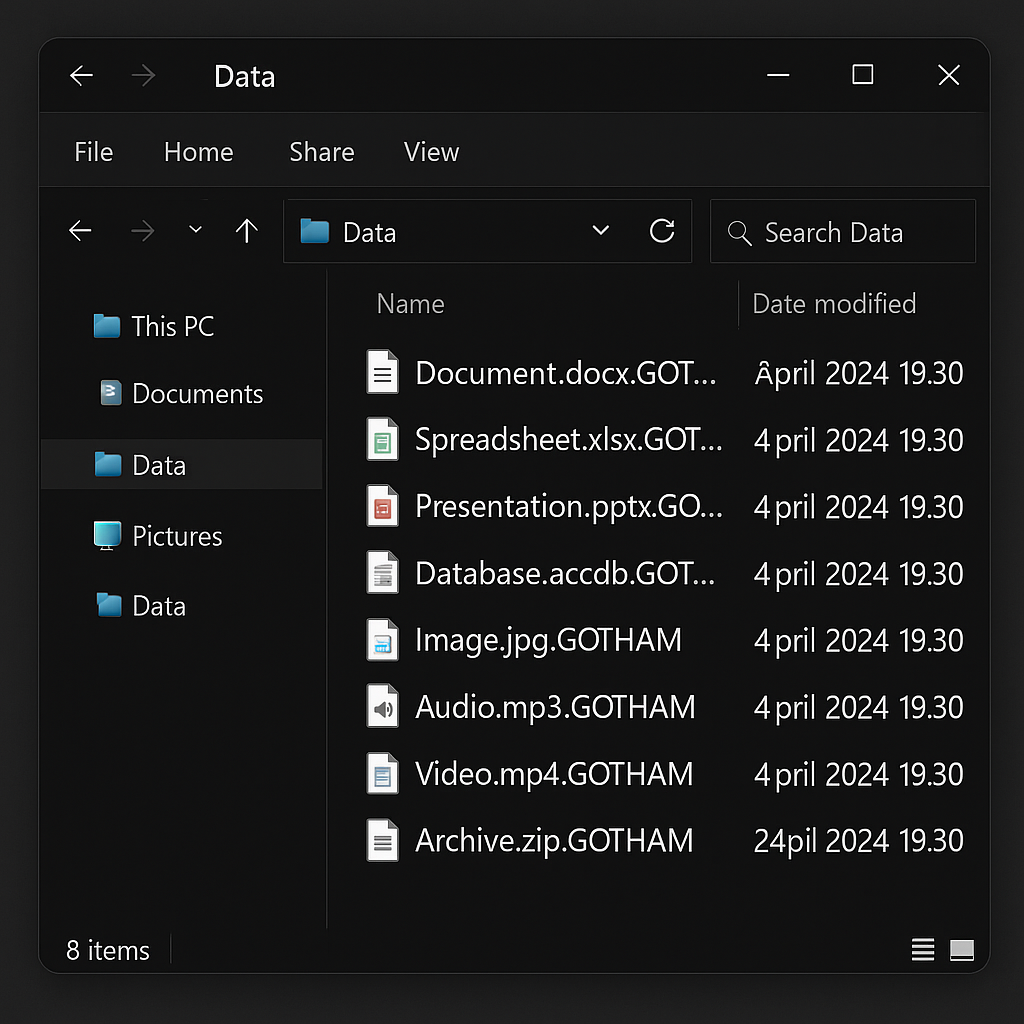 Data ini membantu ahli menilai pola GOTHAM Ransomware, potensi opsi pemulihan, dan langkah apa yang sebaiknya dihindari karena berisiko merusak data.